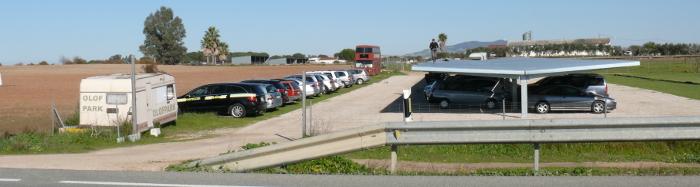 carretera que hay que recorrer hasta el parking como el parking en sí